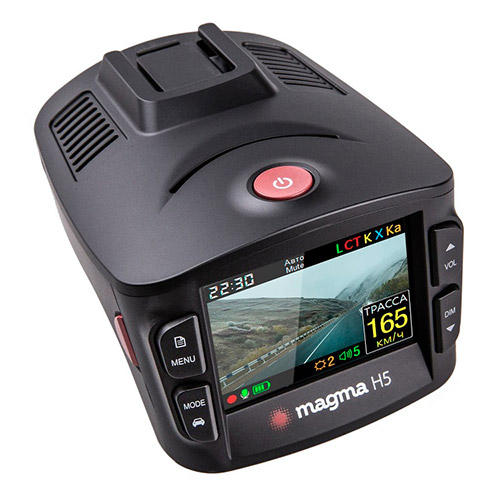 Корпус Magma H5 выполнен из прочного пластика, а закруглённые края добавляют новинке изящности. Меню прибора разбито по вкладкам и даёт пользователю возможность гибкой настройки девайса под свои предпочтения. Настраивается поведение радарной части, скоростные фильтры, а также работа GPS-информатора (отключение оповещений по определённым типам объектов). Присутствует режим Смарт, необходимый для автоматической смены режимов Трасса/Город в зависимости от набранной автомобилем скорости.